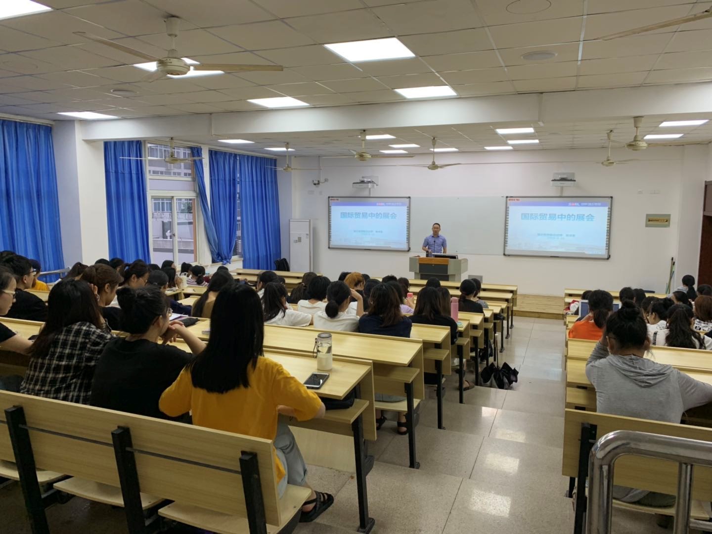 2019年6月19号晚六点半国际贸易参展策划(实践课)课程组的邀请了中国汽车配件行业的龙头企业——瑞立集团的副总经理曾成章先生,在北校三号楼301教室为17国贸本和18国贸专升本的同学们带来了一场关于国际贸易展会实战的经验分享。