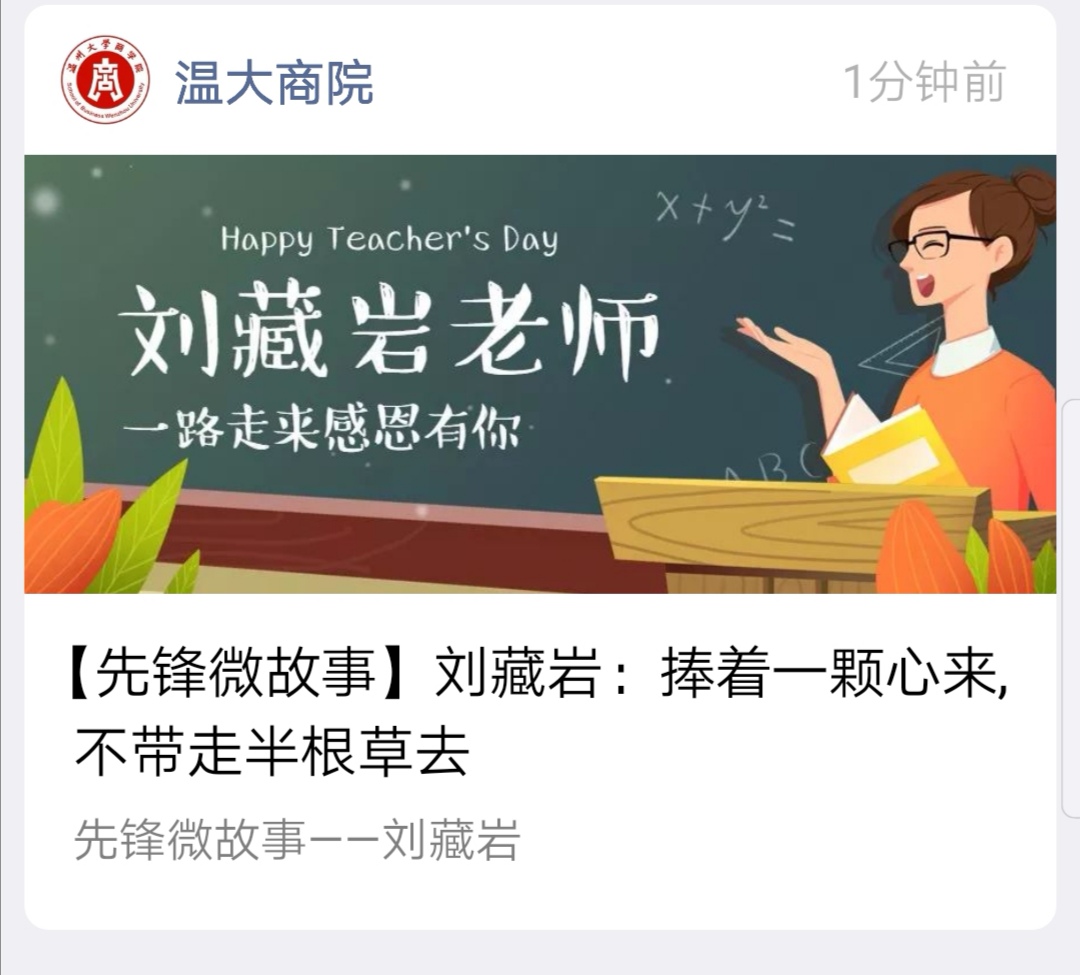 温大商院公众号为新退休老师刘藏岩老师专题推送留念