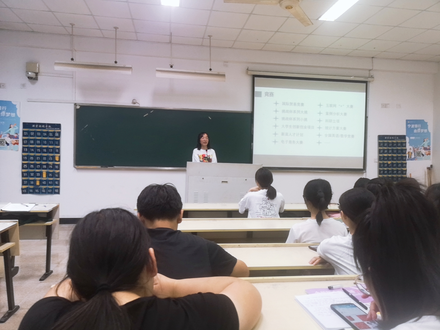 首先,16国贸班的斯琳晓以“不做积极废人”为主题,建议新生们在从事学生工作时要保持热情、礼貌待人、积极负责,同时平衡好学习和学生工作之间的关系,尽力取得各级奖学金,随后,斯琳晓着重介绍了几项竞赛,并且鼓舞新生们积极参与,不断学习,为自己积累宝贵的经验。