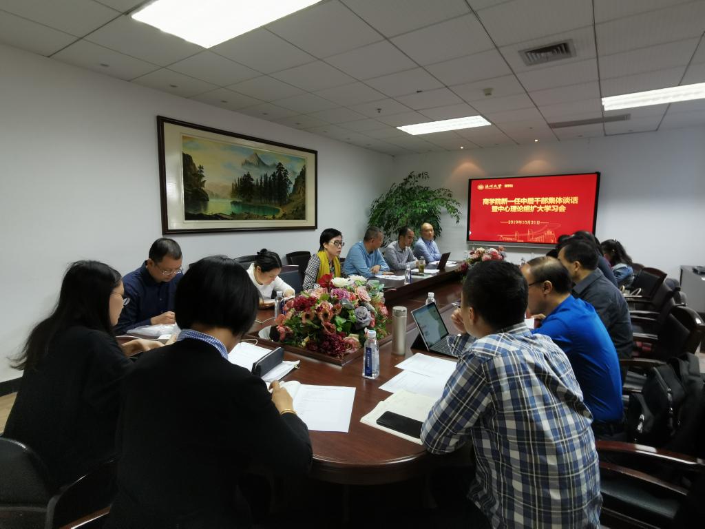 党委在A222会议室召开新一任中层干部集体谈话暨中心理论组扩大学习会,学院党政班子、党委委员、纪委委员、教工支部书记、系(部)主任出席会议。