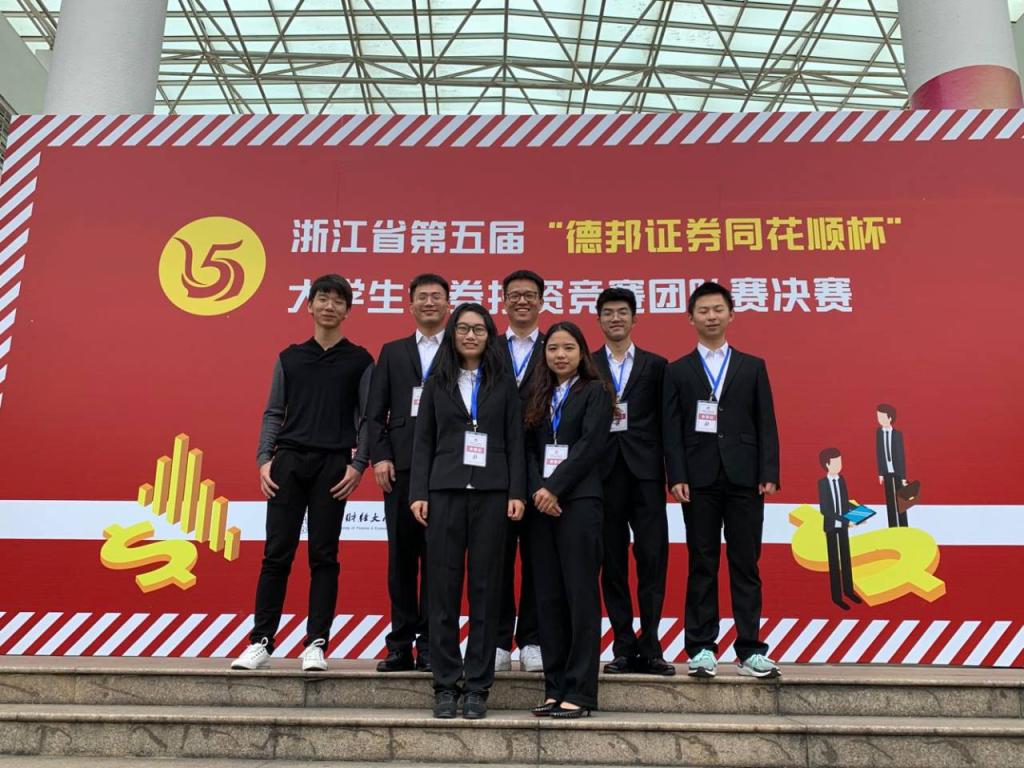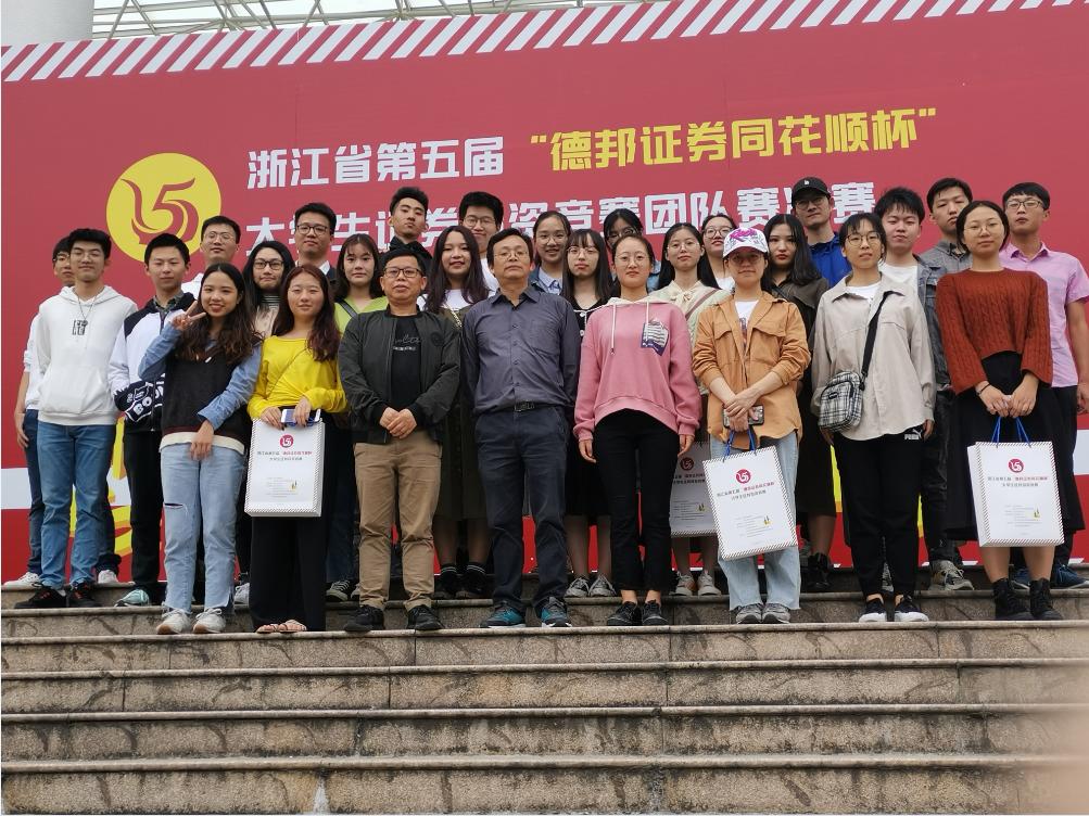 2019年10月26日,我院学子前往杭州参加浙江省第五届“德邦证券同花顺杯”大学生证券投资竞赛团队赛决赛答辩。在与全省多所高校的激烈角逐中,我院学子最终创下了一等奖1项、二等奖8项、三等奖2项的历史佳绩。