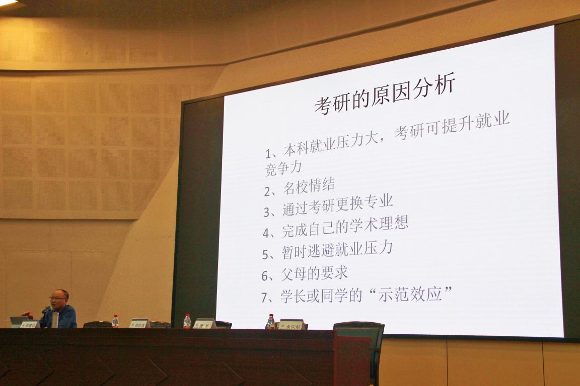 随后,有着丰富教学经验周建华老师为同学们带来了生涯季首场活动——考研辅导讲座。周老师先从考研形势分析入手,为同学们剖析了老王论坛