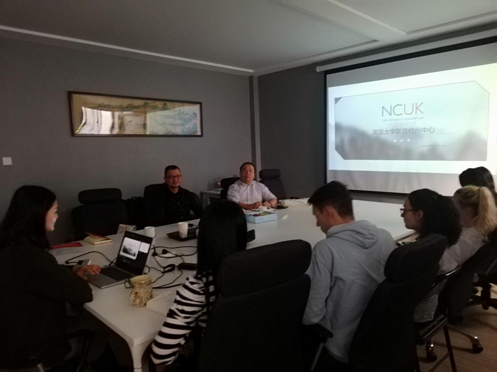 相关人员与NCUK杭州中心负责人第三次会面,未来若达成合作,将提高本科生升硕率、帮助更多温州大学学生在英国继续深造,同时为学院教师在英国出版社发表英文国际论文提供一定帮助。