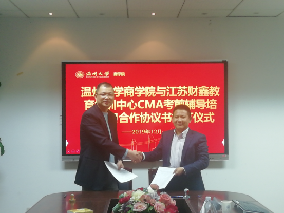 会议最后,双方就合作培训项目的运行机制、双方权利与义务、教学服务等相关事宜进行了磋商。我院副院长余向前与财鑫教育董事长张福德签署并交换了合作协议。
