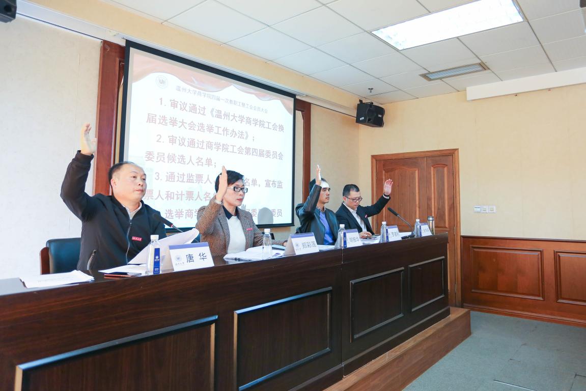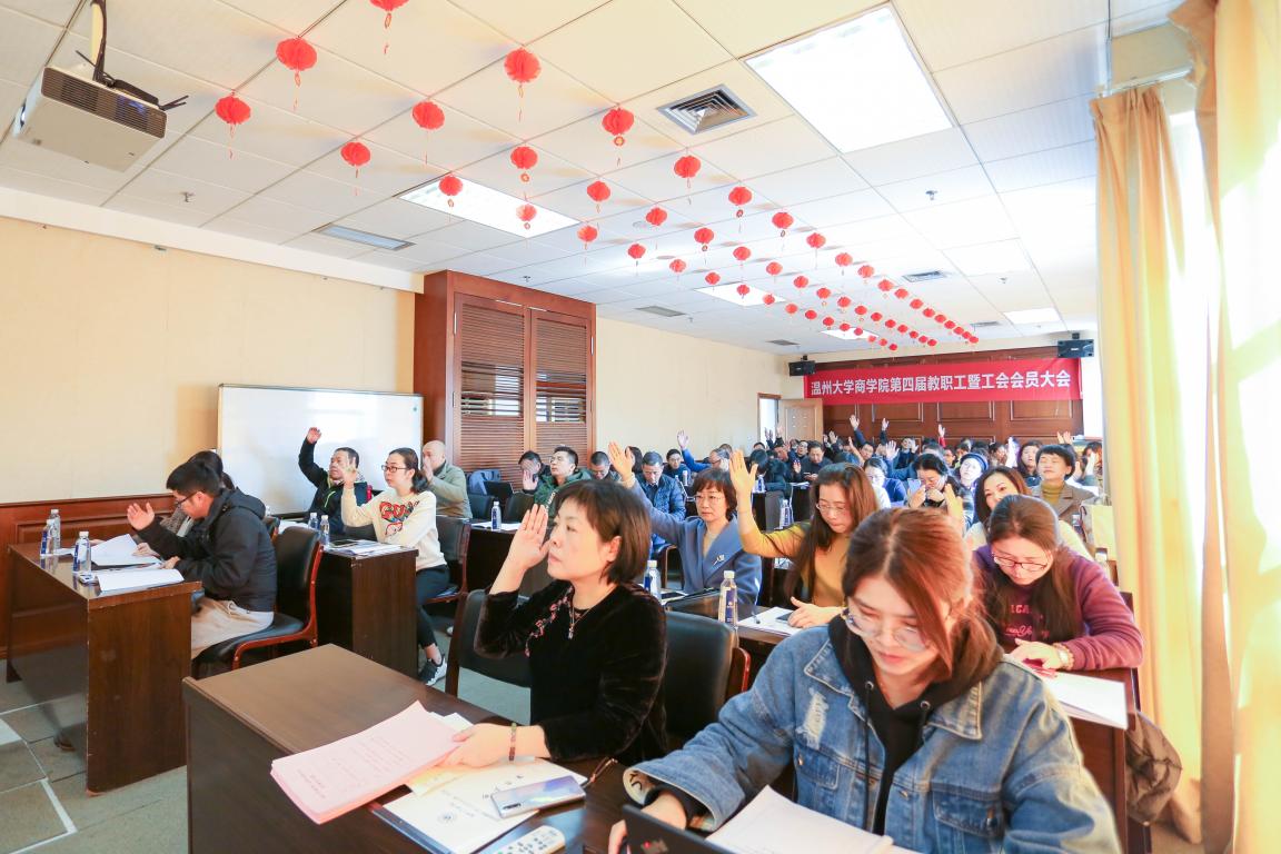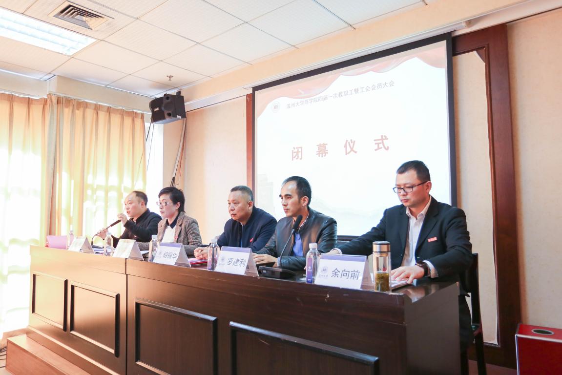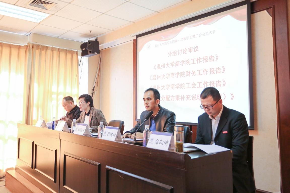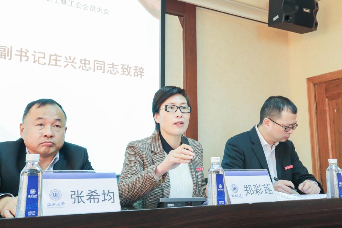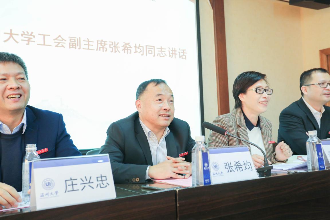 在北信息楼A301室隆重召开第四届教职工暨工会会员大会第一次会议。温州大学党委委员、副书记庄兴忠、校工会常务副主席张希均应邀出席,会议由学院党委书记郑彩莲主持,老王论坛