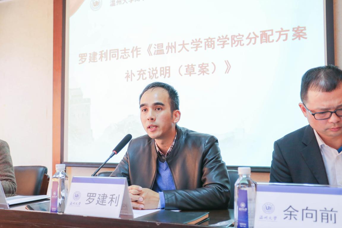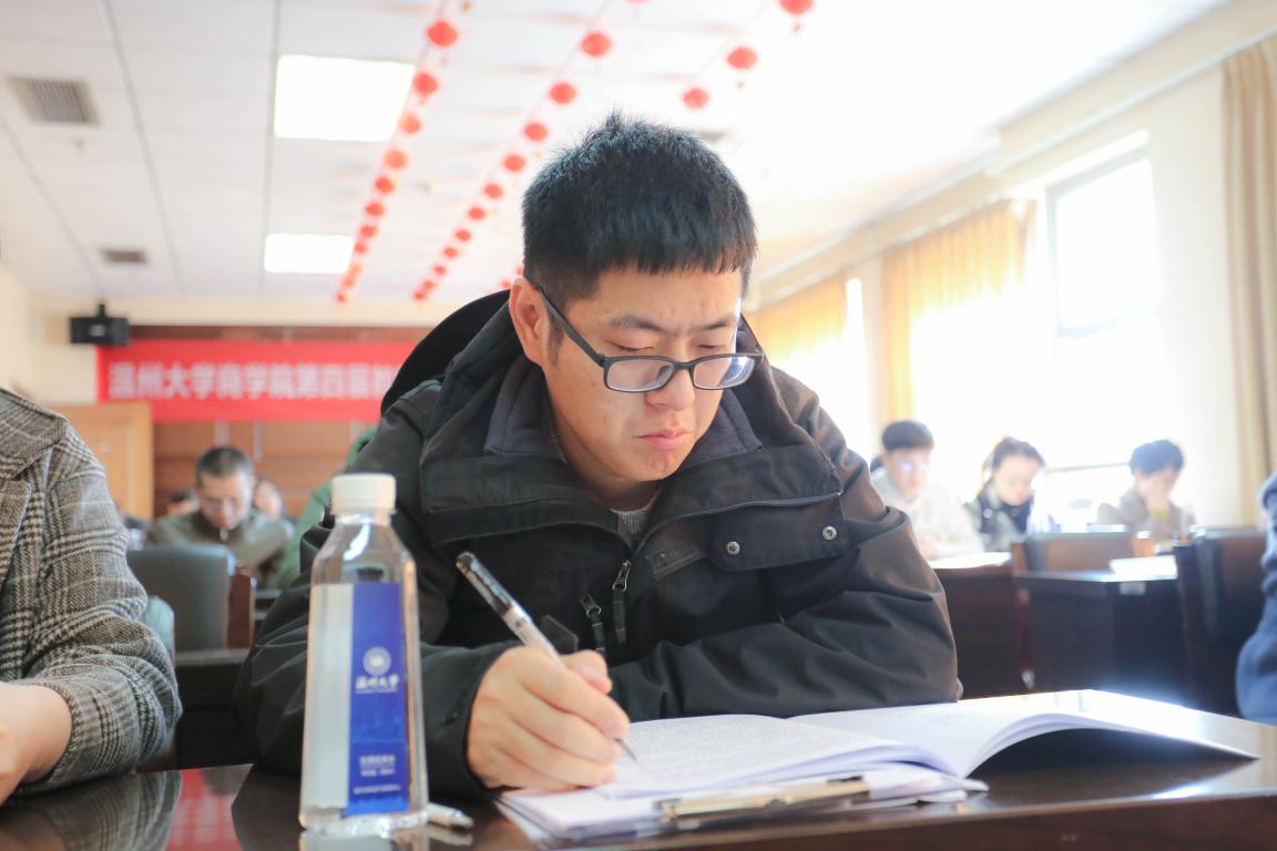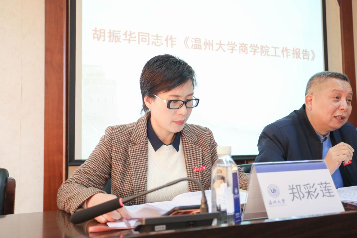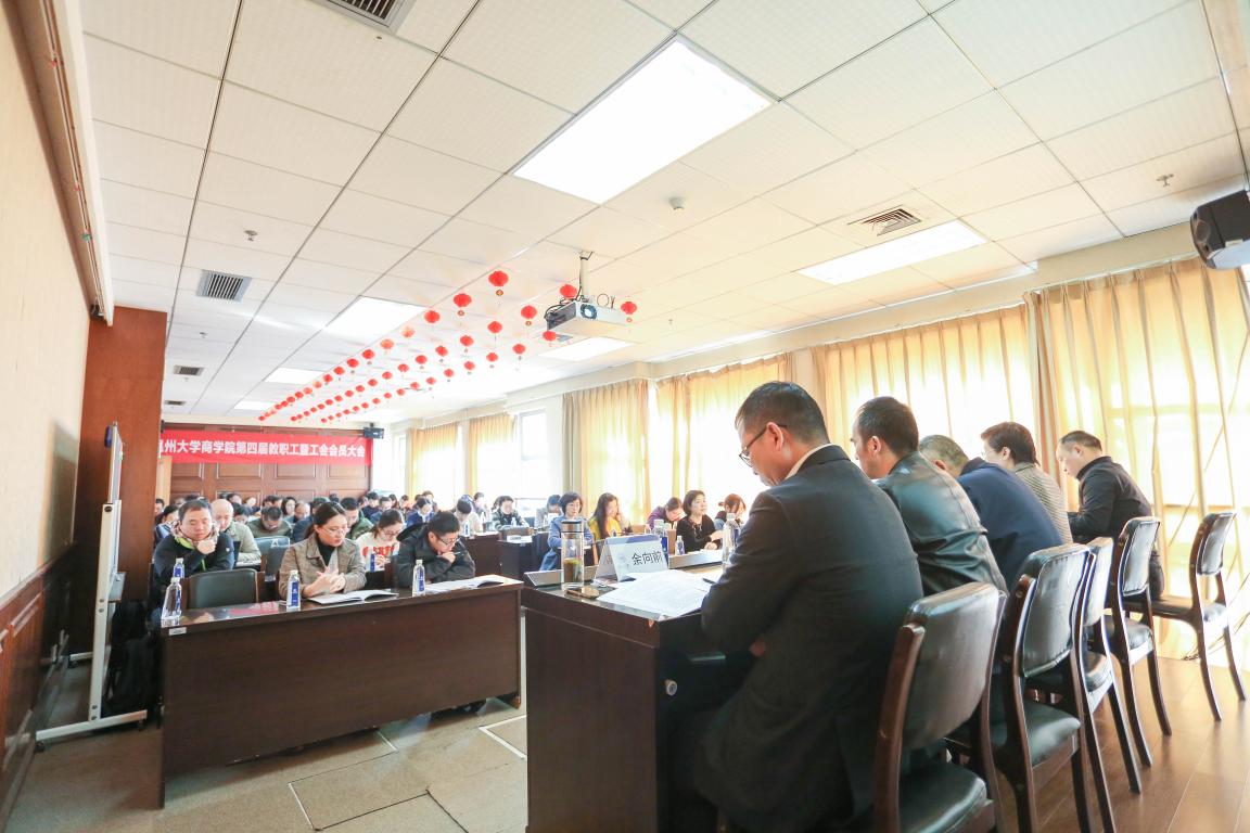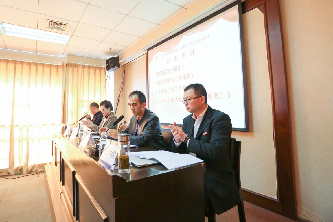 工作报告》。2019年,学院紧紧围绕学校创建博士学位授予权单位、“省市共建省重点建设高校” 等重点目标和“不忘初心、牢记使命”主题教育全方位开展各项工作,学院取得了六个方面的成绩:一是推进高校教育质量革命,对标各项教学指标;二是整合现有国际化人才队伍,加大商科国际化认证和合作办学;三是加强教师队伍建设,提升学院持续发展;四是强力推进学科建设,科学研究成果持续丰硕;五是以党建统领学院发展,夯实基层党组织建设;六是构建“十大”育人体系,促进学生全面发展。2020年,我们必须坚持学校“锚定三大目标,实施七大战略,推动跨越发展”,坚持学院“以本为本,创建一流”,进一步推进特色商科建设,坚持办学的国际化导向、创业导向、科研导向,以提升办学水平,提高学院的核心竞争力。