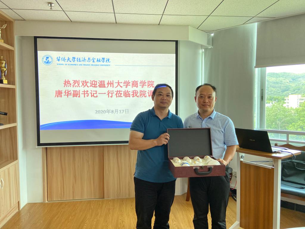 经济与金融学院黄建烽书记(左)向唐华副书记赠送纪念品