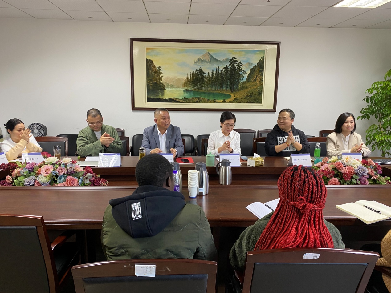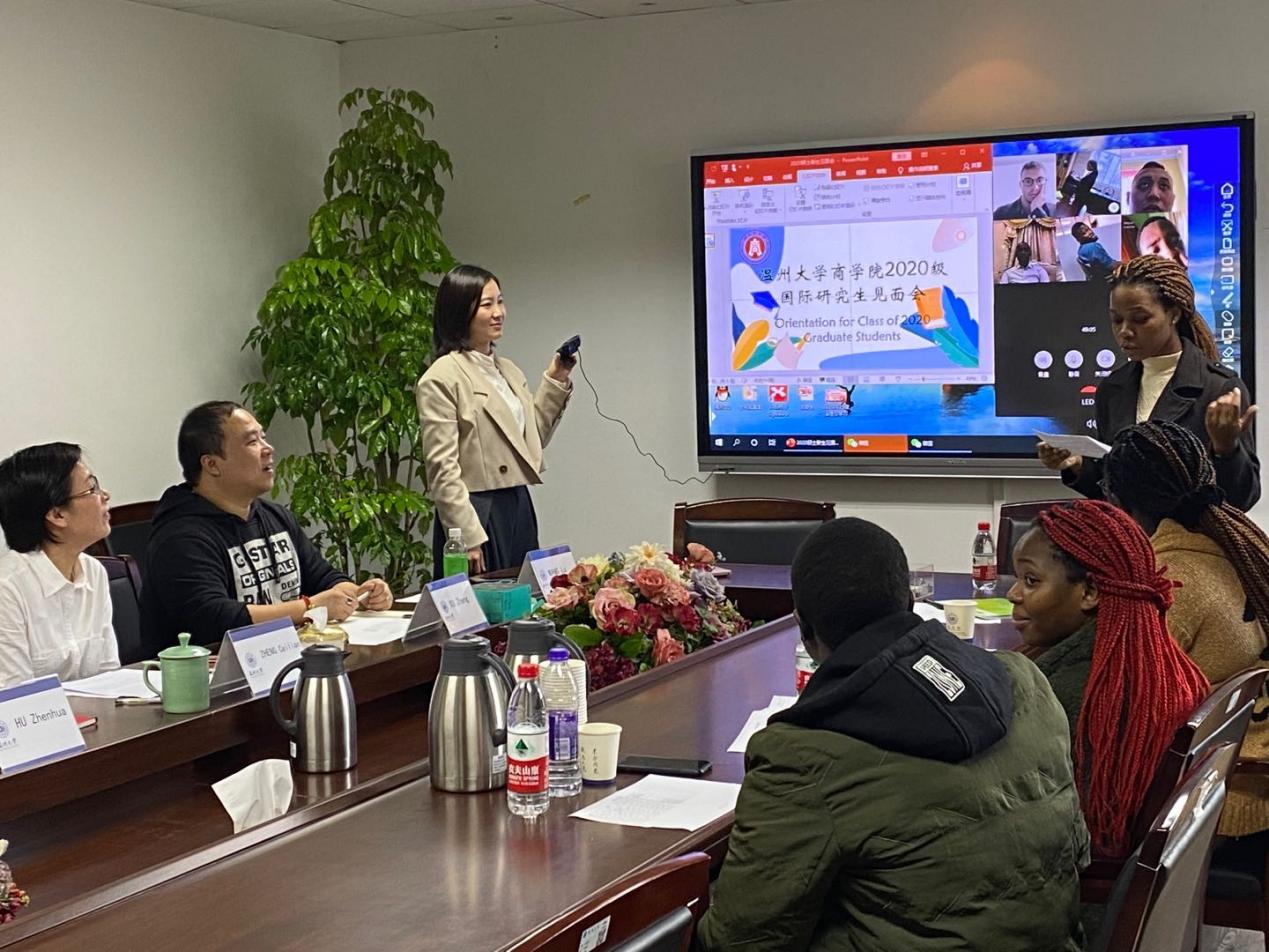 党委书记郑彩莲、院长胡振华、副院长余向前,国教部主任徐正、国际研究生负责人王露,国际部副教授陈翊老师和其他老师出席了此次会议,由于新冠疫情的影响,4名境内学生校内现场参与了见面会,其他5名境外学生通过微信会议参与此次会议。全场会议以英文进行。