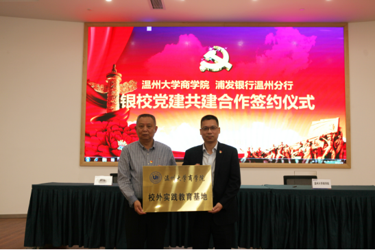 校外实践教育基地授牌,浦发银行温州分行聘请学院六位教工支部书记为金融党课讲师暨智库专家。