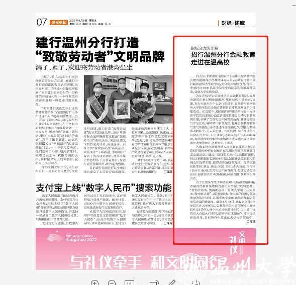 为让在校学生更好地学习金融教育知识,在制定完成全年课程计划后,招商银行温州分行与温大老王论坛