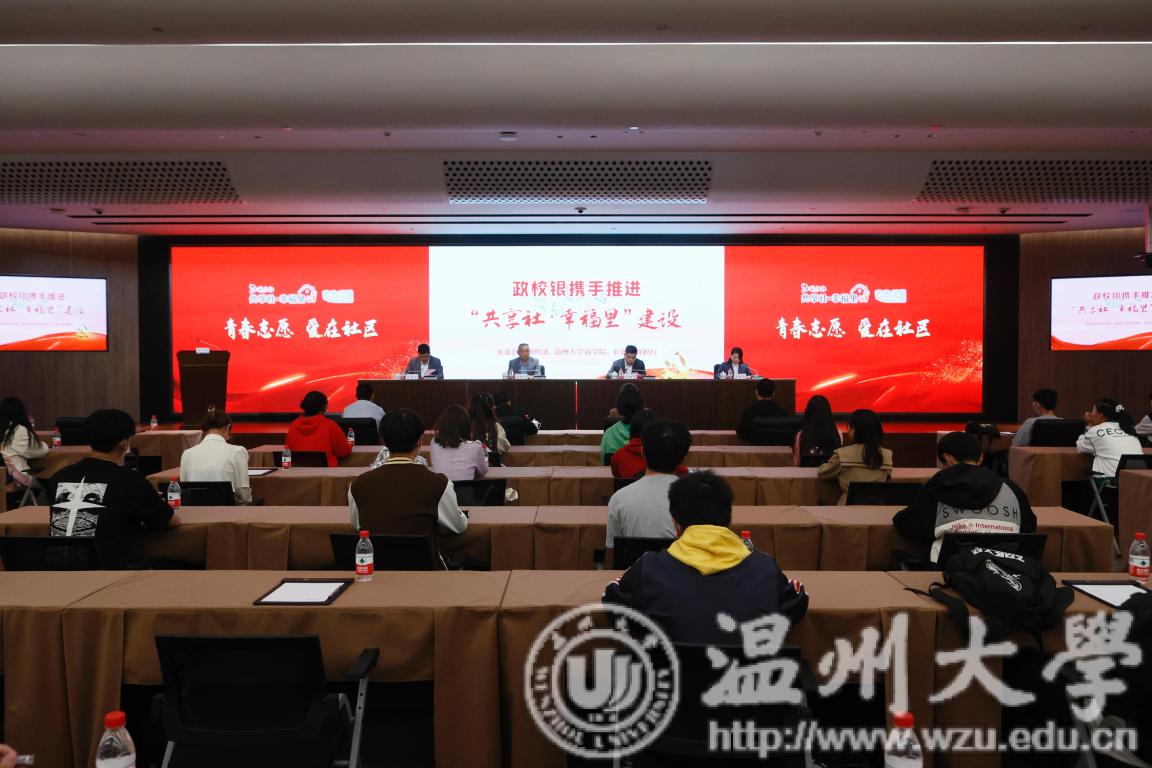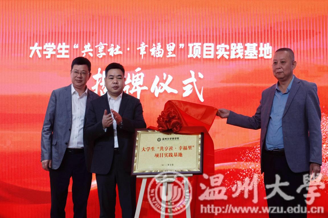 、永嘉农商银行签订合作协议,通过政校银合作共同推进党建引领现代社区建设及“共享社·幸福里”建设工作。同时还进行了“大学生社会实践基地” 授牌和大学生“共享社•幸福里”项目实践基地授牌。