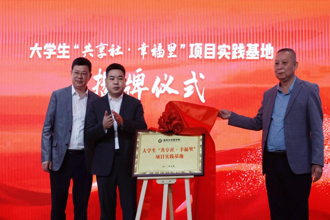 、永嘉农商银行签订合作协议,通过政校银合作共同推进党建引领现代社区建设及“共享社·幸福里”建设工作。 同时还进行了“大学生社会实践基地” 授牌和大学生“共享社•幸福里”项目实践基地授牌。