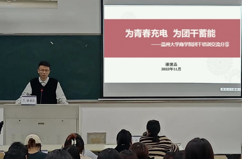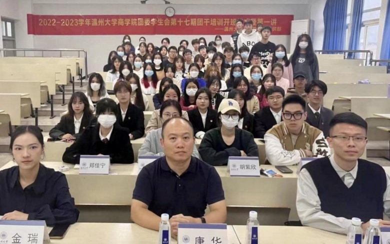 同期举办了第十七期团干培训开班仪式暨第一课,由招商银行温州分行团委书记潘道品为团学干部讲授“为青春充电,为团干蓄能”主题团课,以自身的大学和职场经历,为团学干部分享经验并提出建议。
