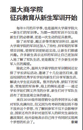 来自2018级市场营销专业的李同学从小就对军队充满向往,但又因为有考研的规划而不得不放弃这个梦想,当了解到参军不仅不会影响学业,国家还有许多针对退伍军人的研究生录取优惠政策时,他兴奋地表示自己终于有同时实现两个梦想的机会了。章瑚