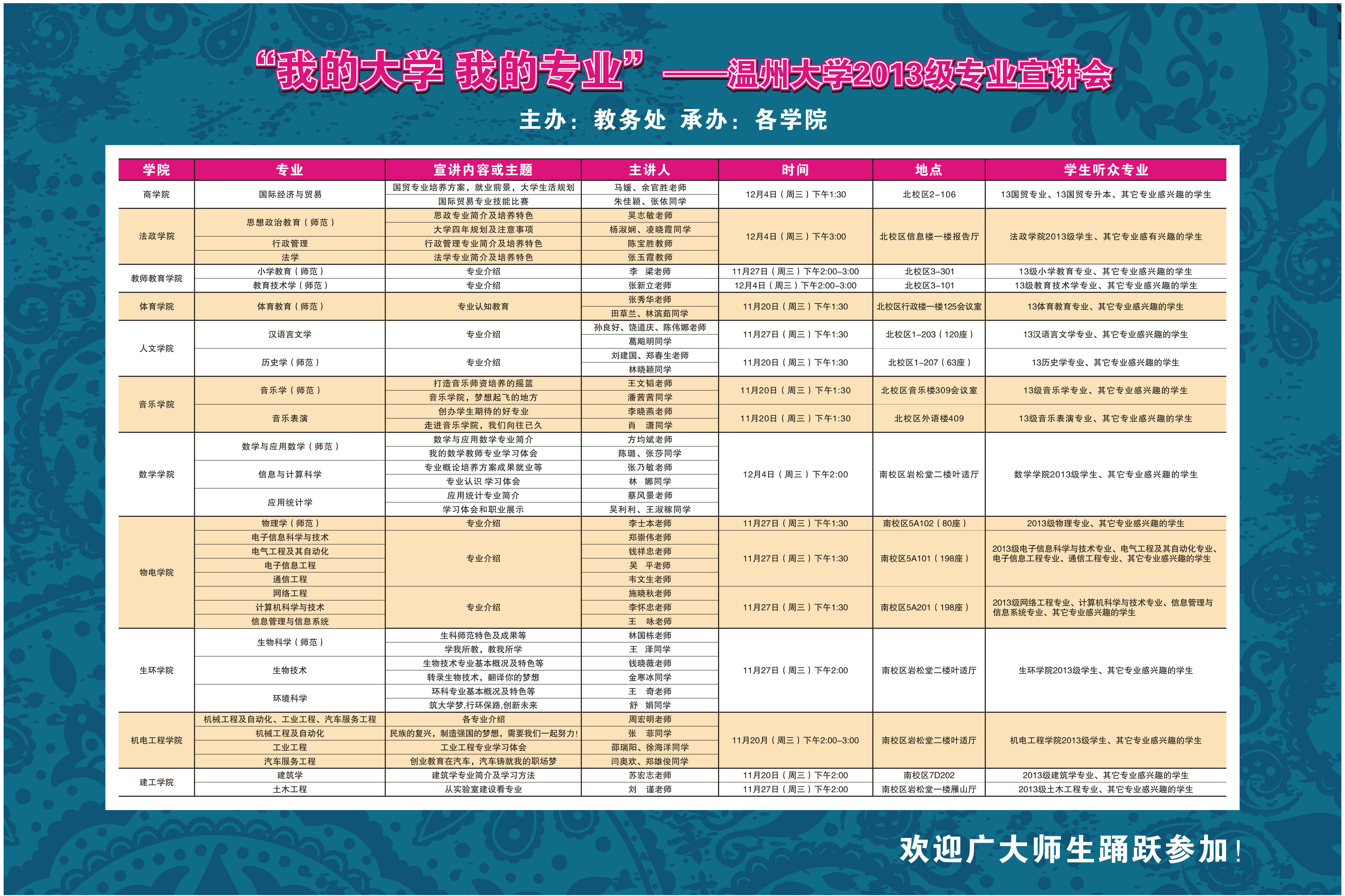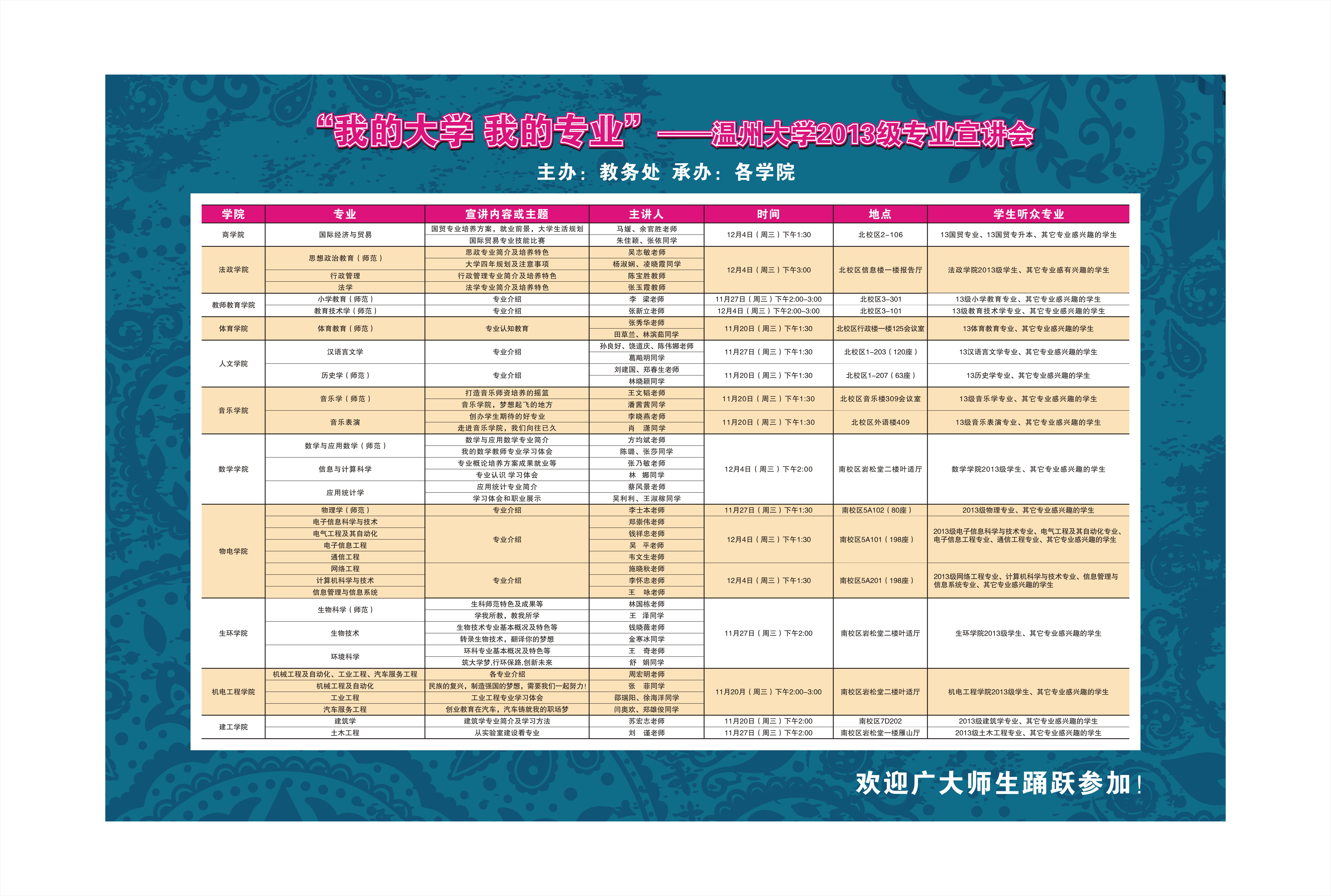 “我的大学 我的专业”温州大学2013级专业宣讲会预告
