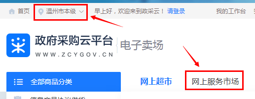 1.入围供应商可在政府采购云平台(//www.zcygov.cn/)的“网上服务市场”栏目中查询,查询时注意左上角地域设置为“温州市本级”(见下图)。