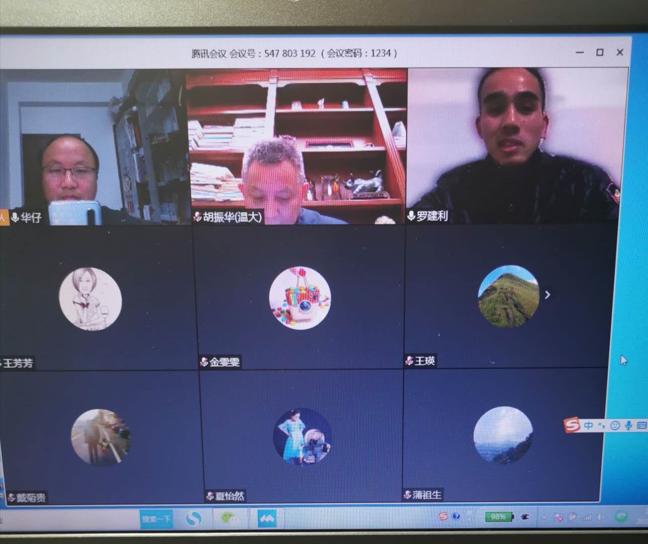 紧接着,支部书记周建华结合已经掌握的信息总结支部党员同志在疫情期间的优秀表现,如胡振华院长带领团队“把论文写在祖国大地上”,在疫情初期撰写多份高质量的调研报告呈递中央办公厅和省市有关部门,获得肯定性批示;何宾、夏怡然、国彦兵、金雯雯等多位教师克服困难进行网上教学,高质量地完成疫情期间的教学,获得师生好评;毛华配老师不但认真完成自己的科研项目和课程,作为疫情期间温州市云医院的心理专家为多个医院提供心理培训、接听市民的心理热线,做小区志愿者,为温州市政法委提供心理干预报告等等;戴菊贵老师作为温州永丰商会秘书长,积极组织会员企业为家乡抗击疫情捐款捐物,组织在温企业复工复产;王芳芳、周建华和吉云等同志作为温州市瓯海区金融服务顾问团成员,积极参与企业复工复产的方案谋划、中标银行的评定和企业融资方案的对接等。