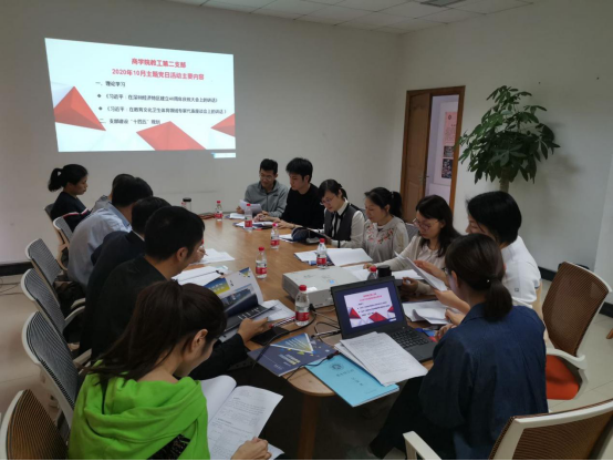 教工第二支部在北校区商学楼A308会议室开展2020年10月主题党日活动,会议由支部书记陈文芝老师主持,支部全体党员参与。此次会议的主要内容包括理论学习和支部建设“十四五”发展规划讨论两个方面。