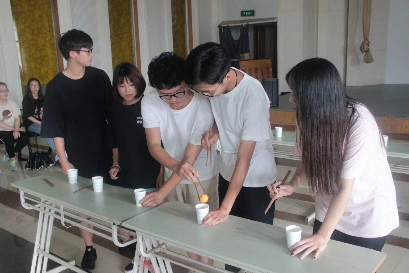 紧接着进行了游戏的第二部分——趣味接龙。同学们积极参与,每一个项目都拼劲全力,将整个活动推向了高潮。在倒扣水杯的环节,当比赛的人员多次尝试之后还不能将水杯立起来的时候,队友都给他加油鼓劲,这充分体现了一个团队的力量。