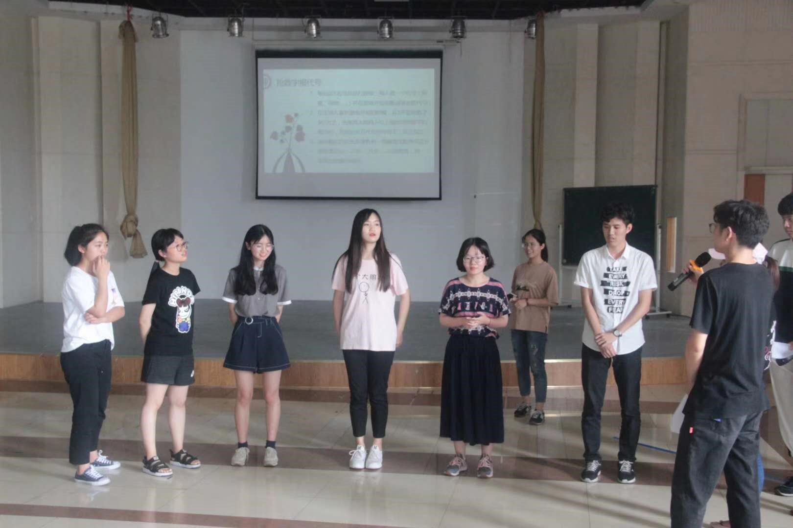 首先进行的是第一部分的游戏为心有灵犀,歌词接龙,正话反说和抢数字报代号。在第一个游戏中,第四小组组员默契十足,词语的比划也十分到位,很快就顺利的完成了比赛。歌词接龙考验了各小组的歌曲掌控能力和反应能力。正话反说这个游戏则是锻炼同学的逆向思维,不要让常规束缚思想。而在最后一个游戏中,代号最简单、也最不被大家看好的第一小组,以“莫泊桑”这一代号冲出重围,拿下该游戏的冠军。这一环节锻炼了大家的心理素质、记忆力以及反应能力。