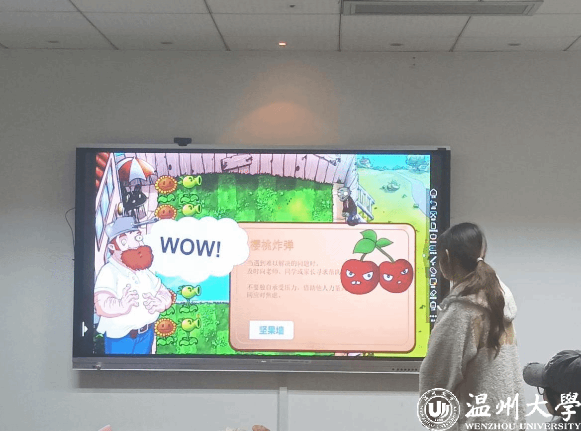 紧接着,23财务管理2班励雨含、22工商管理班刘芷君、24国贸班郑舒倩等3位心理委员进行主题班会评比展示。3位心理委员分别以《戒掉“休息羞耻症”》《抑郁的反面是生命力》《植物大战焦虑指南》为题进行展示。励雨含同学提出了“甘特图休息法”,并巧妙运用经济学成本收益理论来帮助同学们破除休息羞耻感;刘芷君同学以问题“什么是活人感”切入,引导同学们通过“内观日记”“自然接触”“自恋”等方式重建“活人感”;郑舒倩同学则别出心裁将主题班会与游戏“植物大战僵尸”相结合,巧妙地将“向日葵积极暗示”和“坚果墙边界管理”等心理策略融入主题班会中,为同学们提供了生动有趣的“植物大战焦虑指南”。