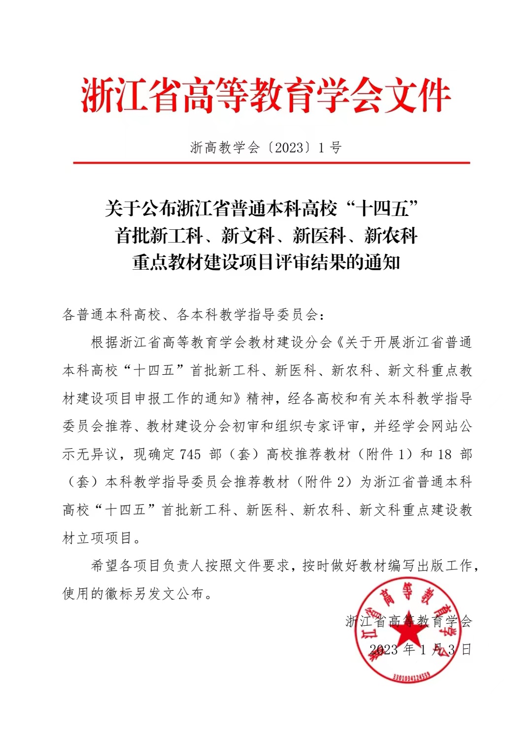 【喜报】我院四位教师获得浙江省普通本科高校“十四五”首批新工科、新文科、新医科、新农科重点教材建设项目立项