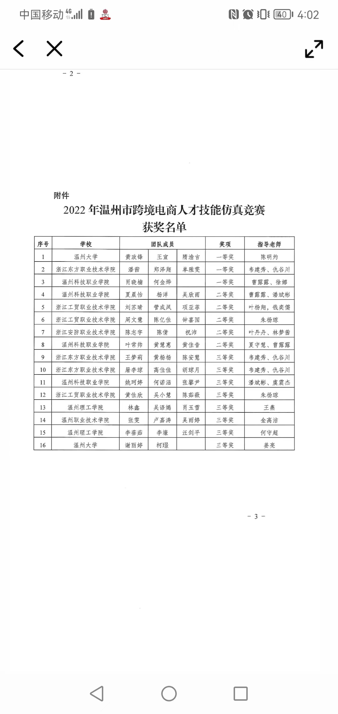 在2022年温州市跨境电商人才技能仿真竞赛中,我院获得二项奖励,其中陈明灼老师指导团队获一等奖,姜亮老师指导团队获三等奖。