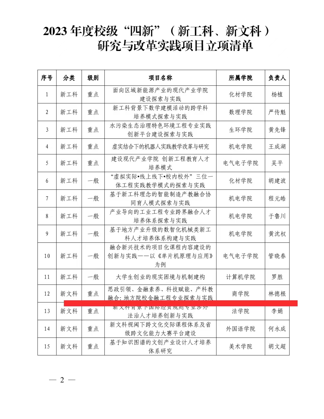 喜报:我院林德根老师主持的项目获得2023年度校级“四新”研究与改革实践项目立项。